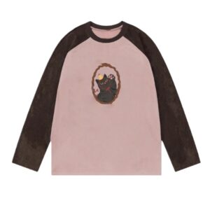 Fun Cat Print Suede Long-Sleeved Shirt
