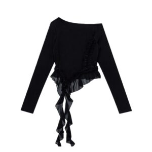 Irregular Mesh Ribbon Black Long Sleeves